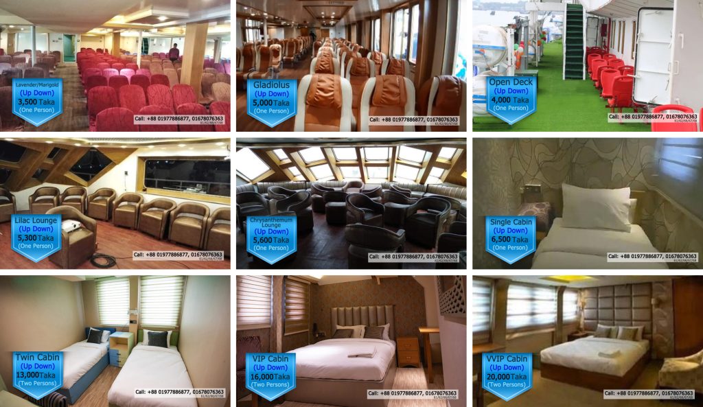 | VVIP Cabin (Deck A – 6th Floor) | 28,000 | 14,500 |